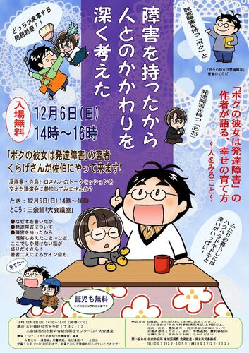 ども、てらかっぱです。 うちのママ(妻)が漫画家寺島ヒロとして、地元の小さなホールで12/6講演をします。くらげさんと共著でだしたボクの彼女は発達障害 の関連です。ご縁がありましたらお越しください。僕はスタッフとして裏にいます。 でこぼこ兄妹日記…